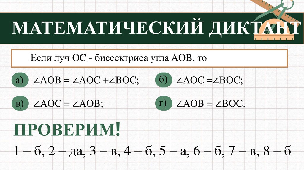 МАТЕМАТИЧЕСКИЙ ДИКТАНТЕсли луч OC - биссектриса угла AOB, то