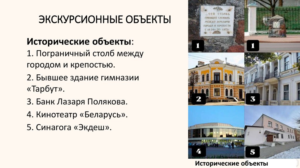 ЭКСКУРСИОННЫЕ ОБЪЕКТЫИсторические объекты: