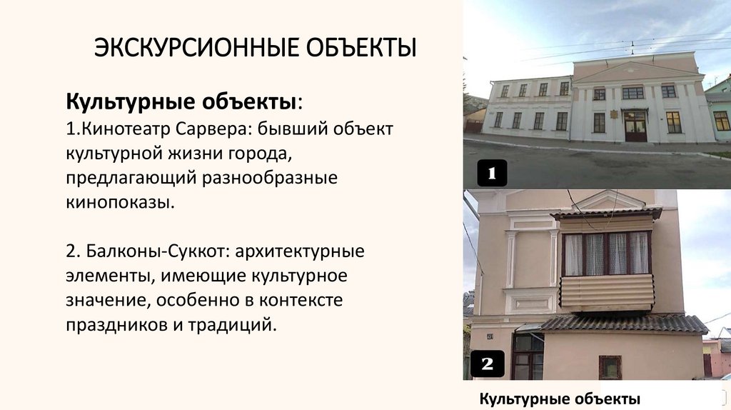 ЭКСКУРСИОННЫЕ ОБЪЕКТЫКультурные объекты: