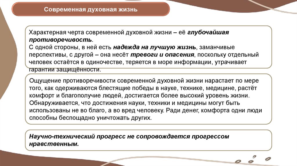 Современная духовная жизньХарактерная черта современной духовной жизни – её глубочайшая