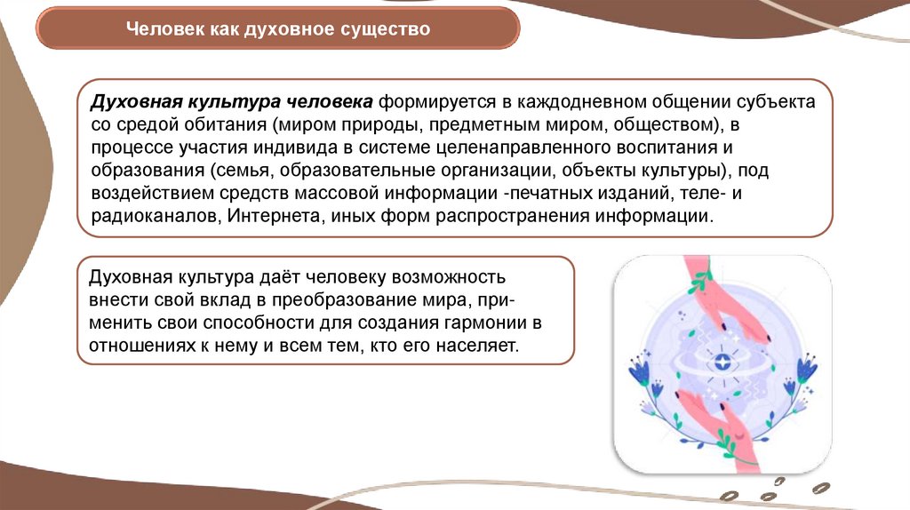 Человек как духовное существоДуховная культура человека формируется в каждодневном общении субъекта