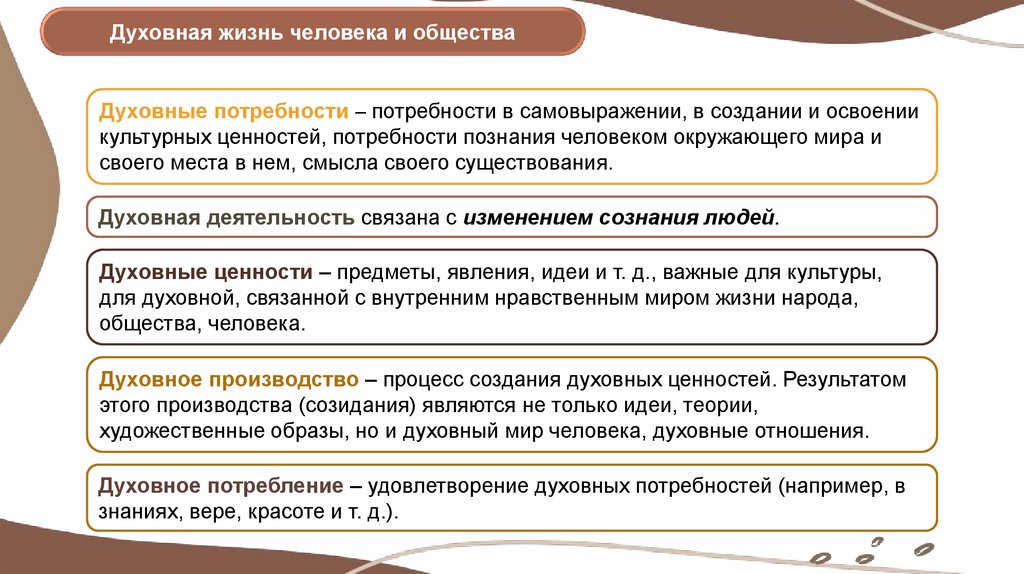 Духовная жизнь человека и обществаДуховные потребности – потребности в самовыражении, в создании и освоении