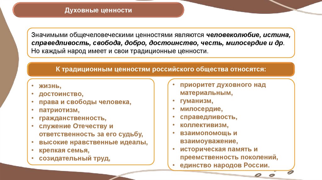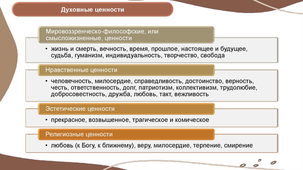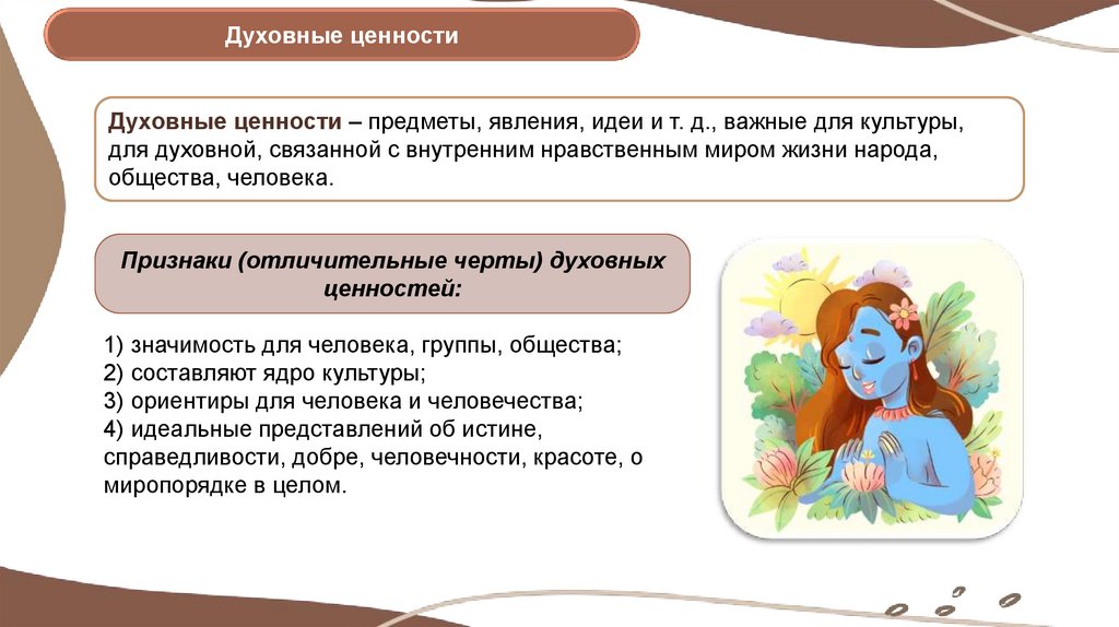 Духовные ценности – предметы, явления, идеи и т. д., важные для культуры,