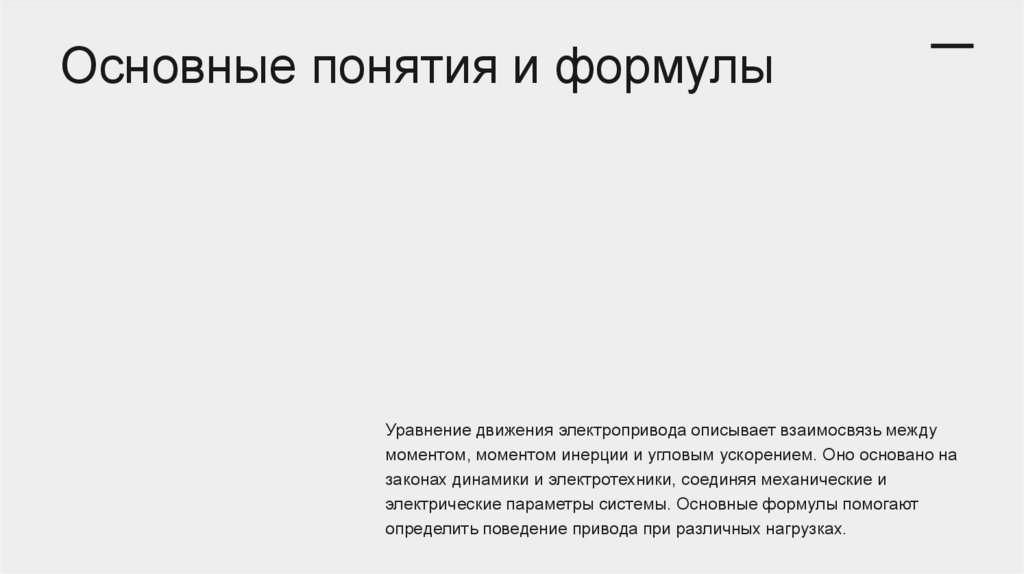 Основные понятия и формулыУравнение движения электропривода описывает взаимосвязь между