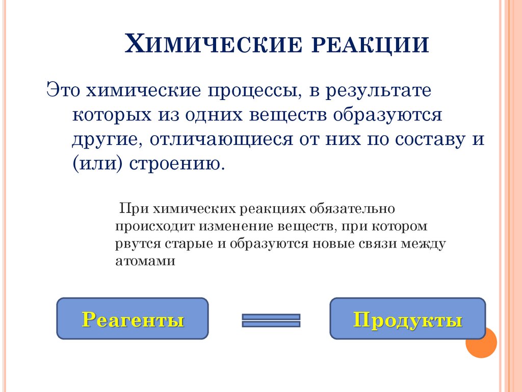 ХИМИЧЕСКИЕ РЕАКЦИИЭто химические процессы, в результате