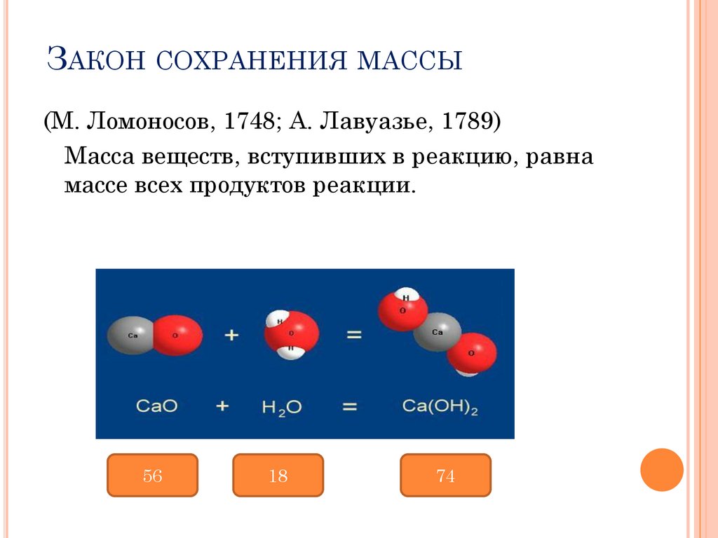 ЗАКОН СОХРАНЕНИЯ МАССЫ(М. Ломоносов, 1748; А. Лавуазье, 1789)