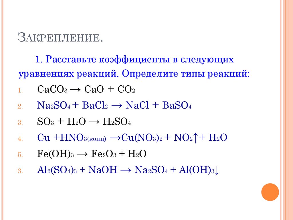 ЗАКРЕПЛЕНИЕ.1. Расставьте коэффициенты в следующих