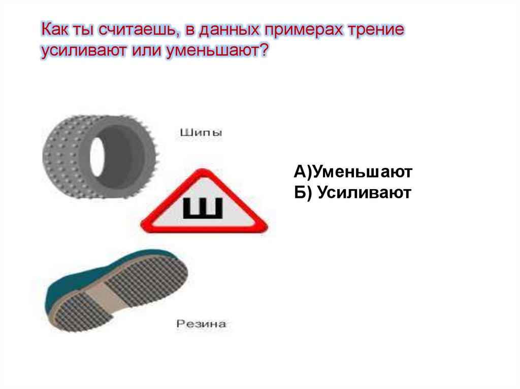 Как ты считаешь, в данных примерах трениеусиливают или уменьшают?