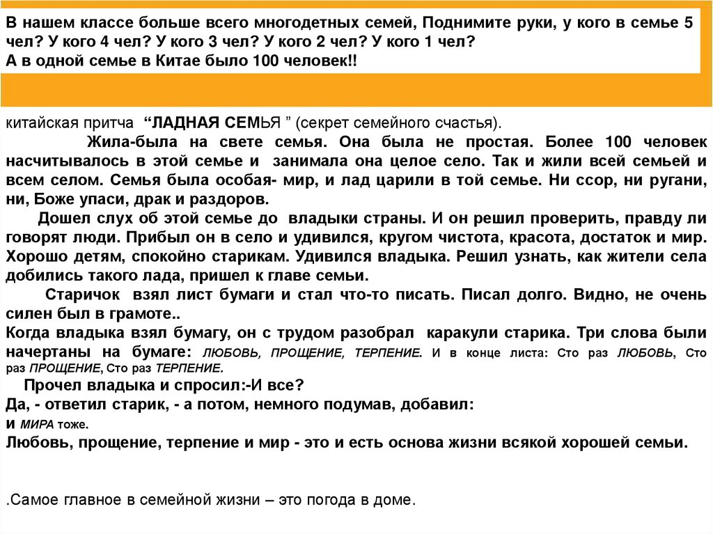 китайская притча “ЛАДНАЯ СЕМЬЯ ” (секрет семейного счастья).