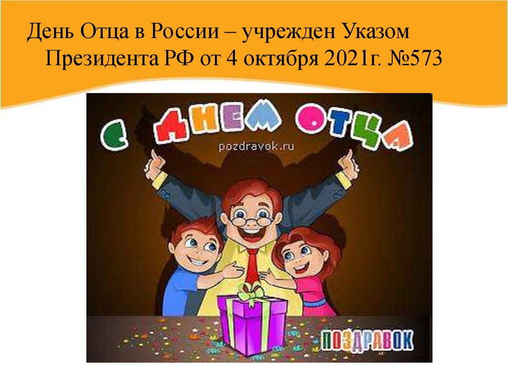День Отца в России – учрежден УказомПрезидента РФ от 4 октября 2021г. №573