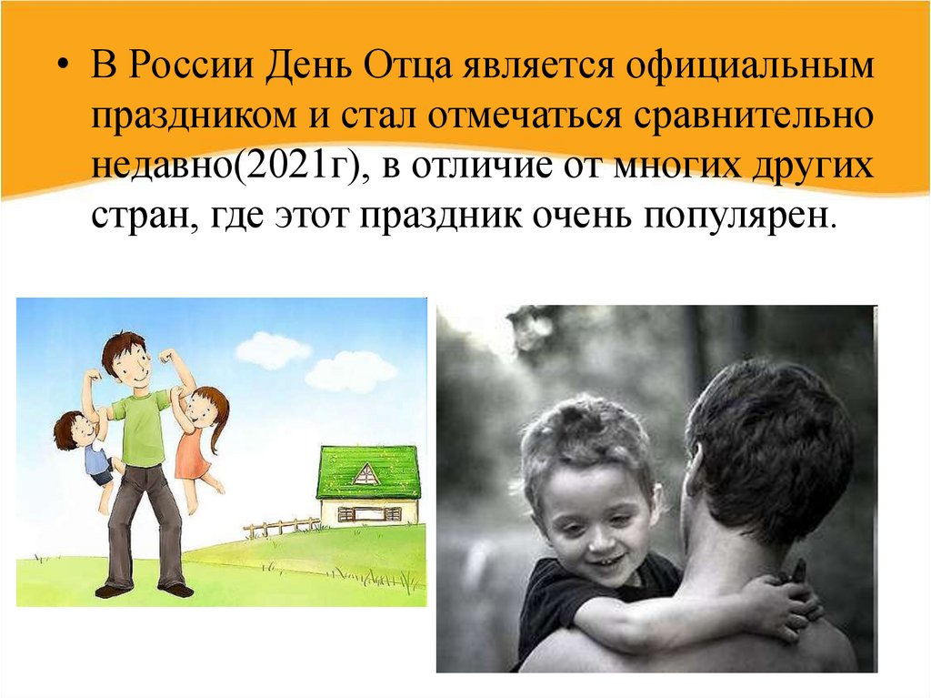 • В России День Отца является официальнымпраздником и стал отмечаться сравнительно