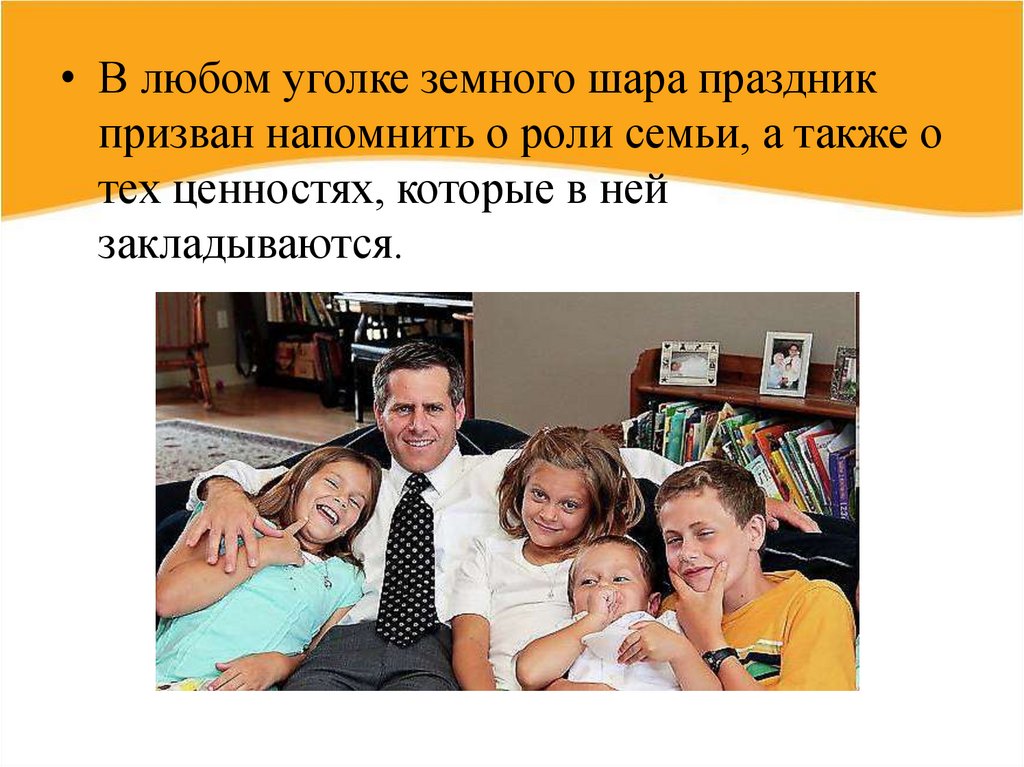• В любом уголке земного шара праздникпризван напомнить о роли семьи, а также о