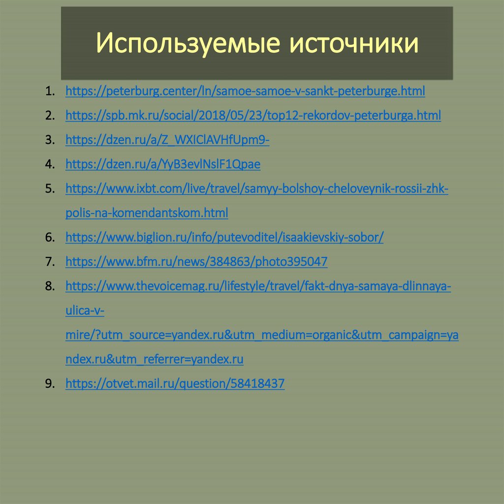 Используемые источники1. https://peterburg.center/ln/samoe-samoe-v-sankt-peterburge.html