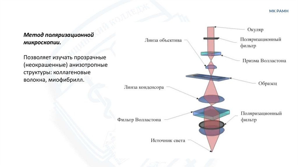 • Световой микроскоп представляет собойоптическую систему, состоящую из конденсора,