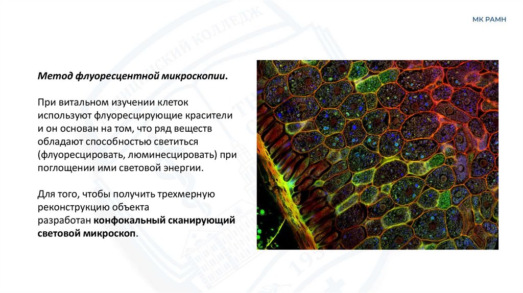 Метод флуоресцентной микроскопии.При витальном изучении клеток
