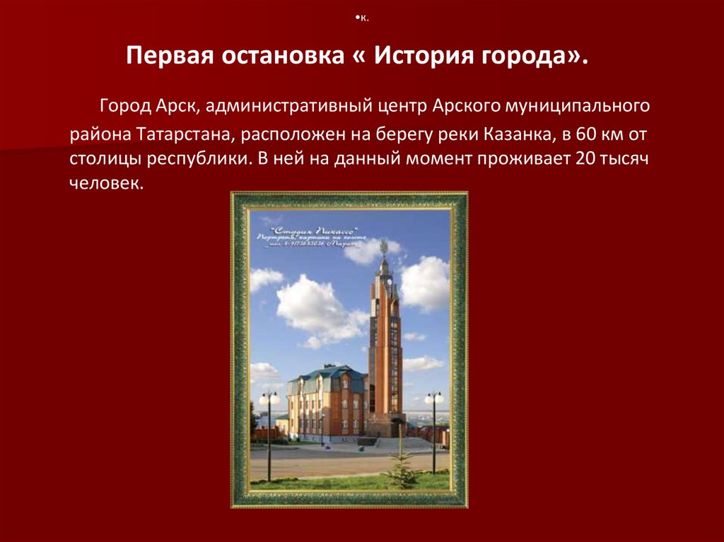 •к.Первая остановка « История города».