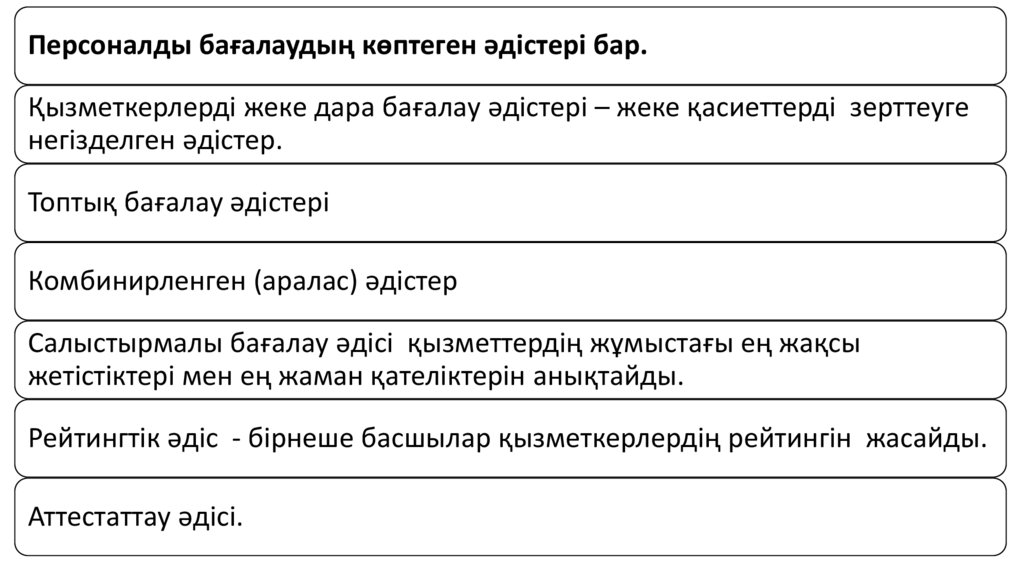 - ағымдағы қызмет нәтижелеріне әрбір қызметкердің еңбекке қатысу