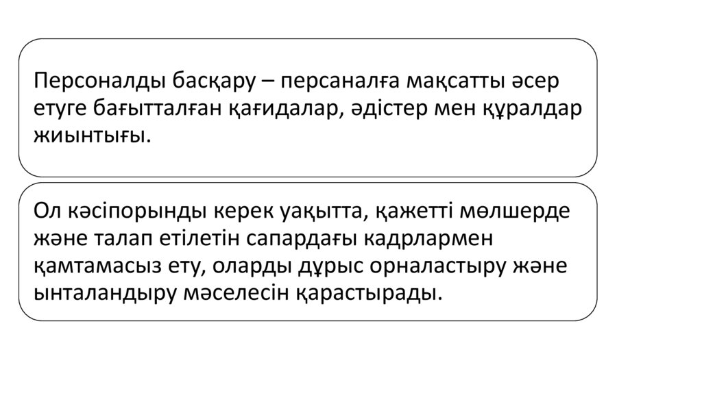 Кадр саясаты деп персоналмен жұмыс жасаудың негізгібағыттарын анықтайтын қағидалардың, талаптардың,