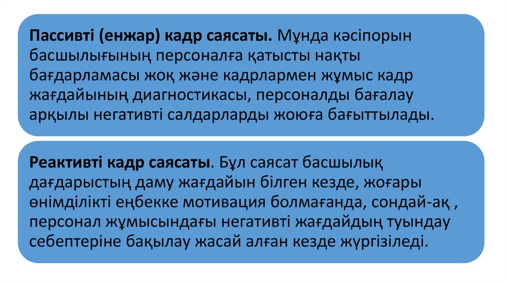 Пассивті (енжар) кадр саясаты. Мұнда кәсіпорынбасшылығының персоналға қатысты нақты
