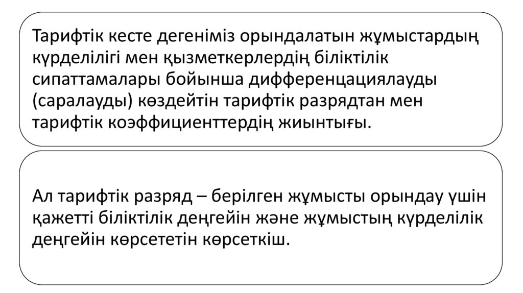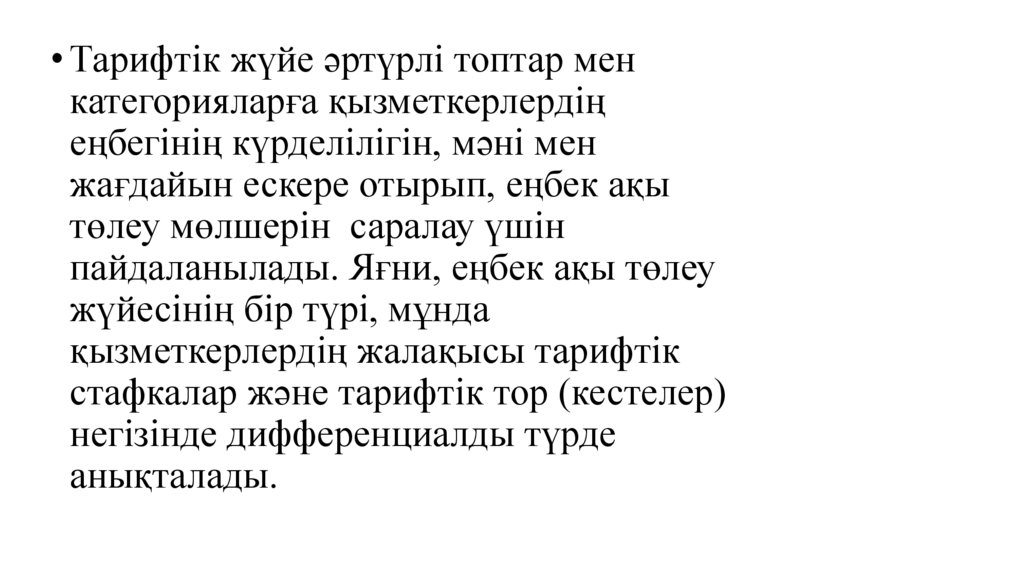 • Тарифтік жүйе әртүрлі топтар менкатегорияларға қызметкерлердің