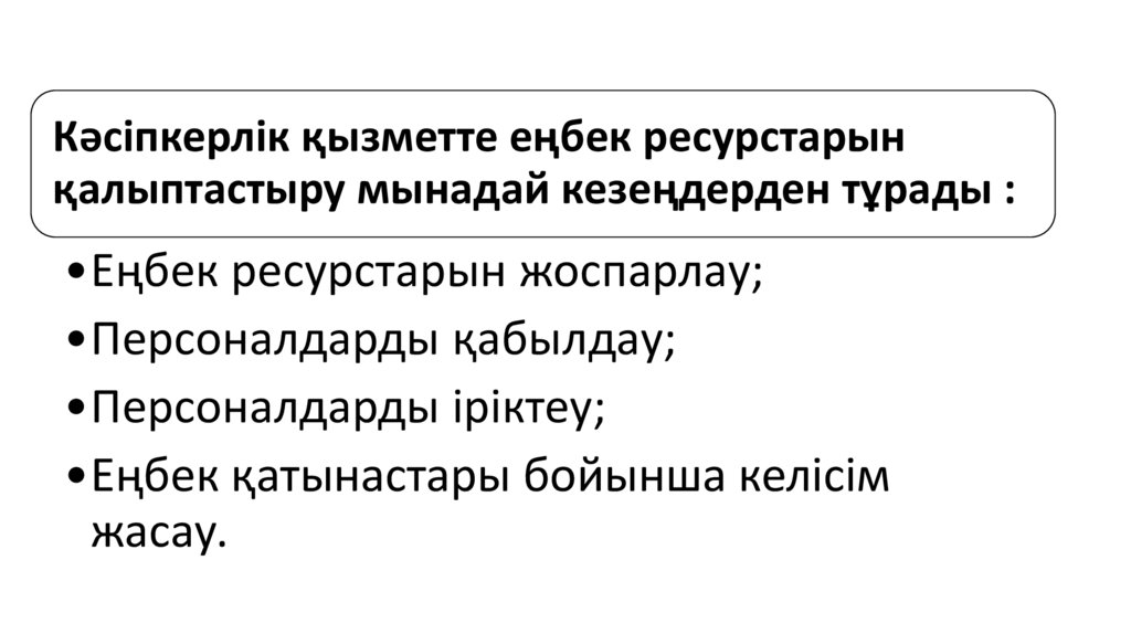Кәсіпкерлік қызметте еңбек ресурстарынқалыптастыру мынадай кезеңдерден тұрады :