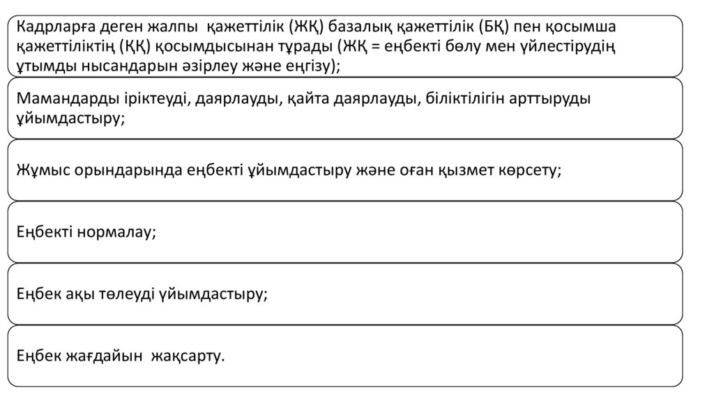 • кадырлық резервті анықтау және қызметкерлерге деген талаптарды нақтылау қажет