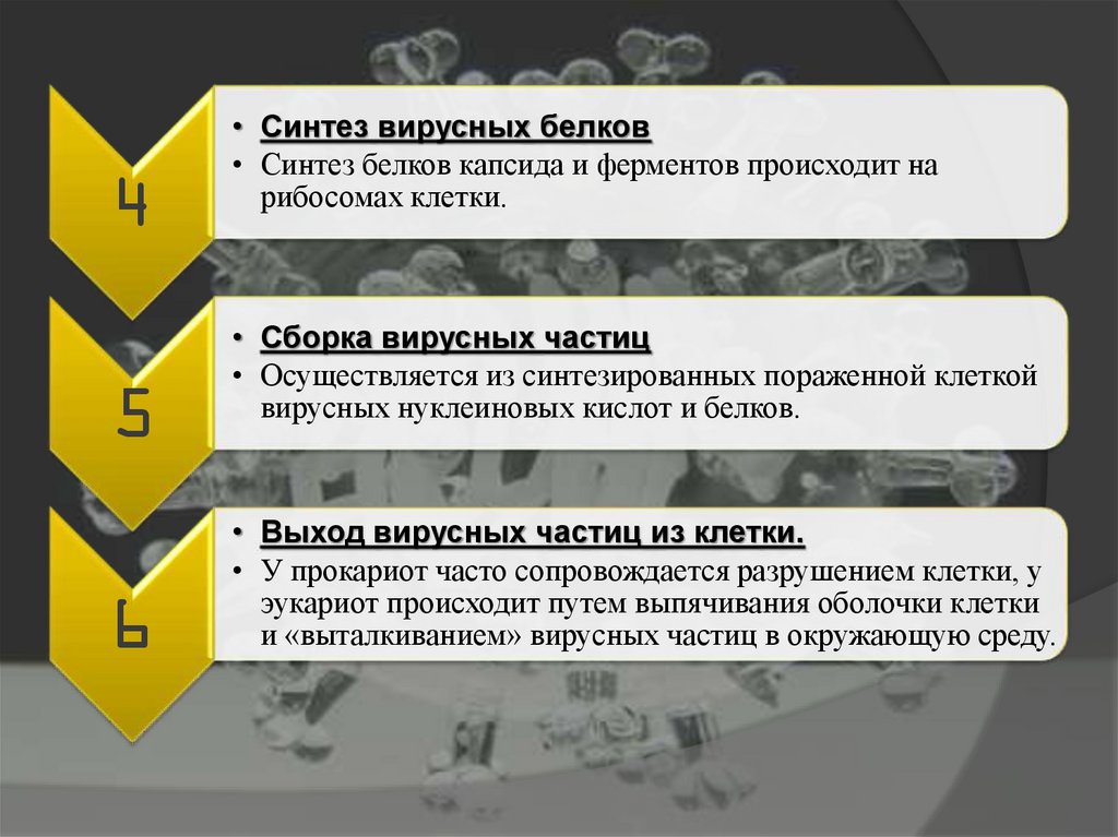 • Выход вирусных частиц из клетки.
