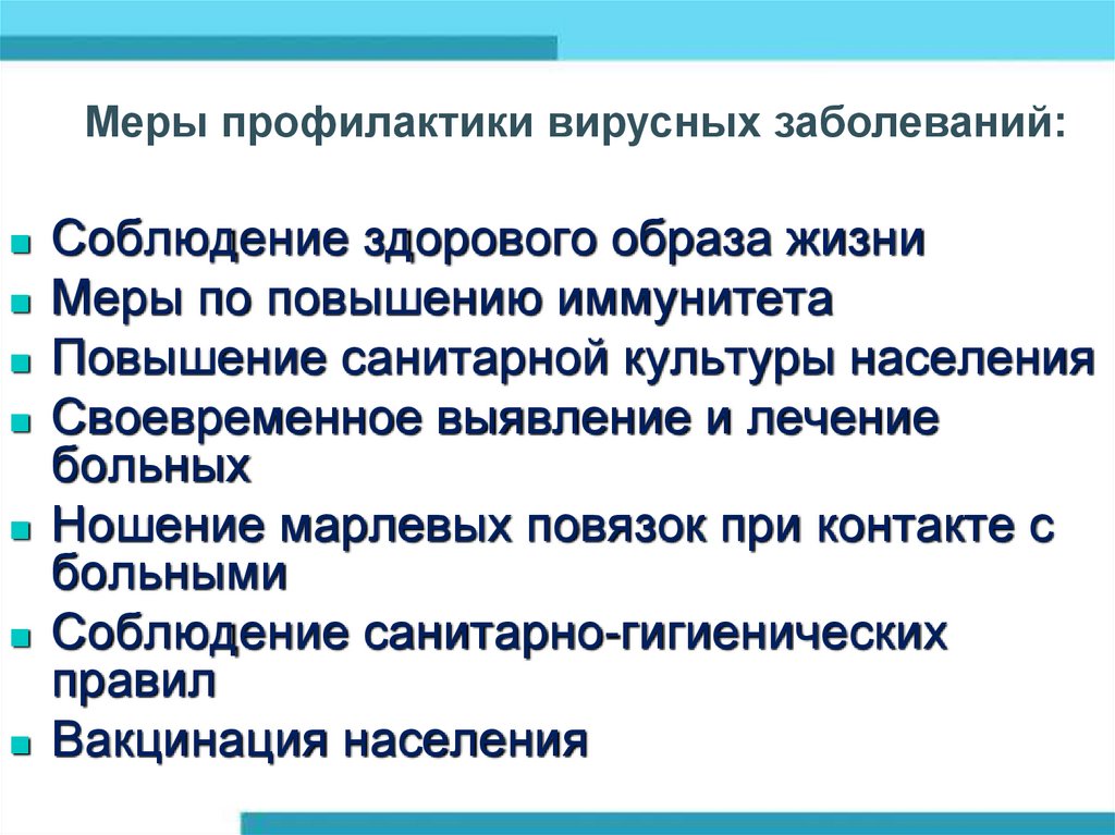 Меры профилактики вирусных заболеваний:Соблюдение здорового образа жизни