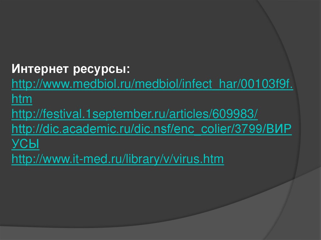 Интернет ресурсы:http://www.medbiol.ru/medbiol/infect_har/00103f9f.