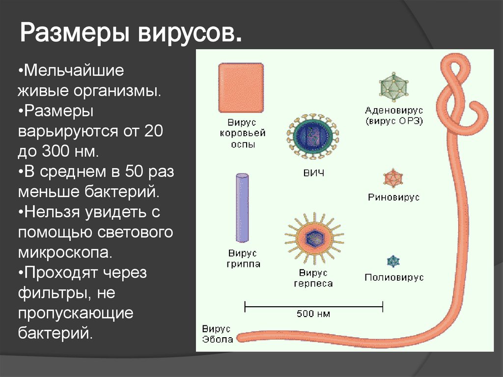Размеры вирусов.•Мельчайшие