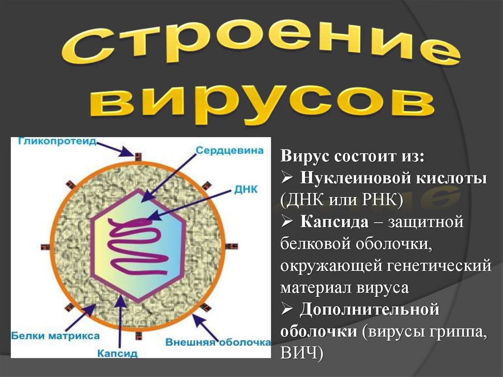 Вирус состоит из:Нуклеиновой кислоты