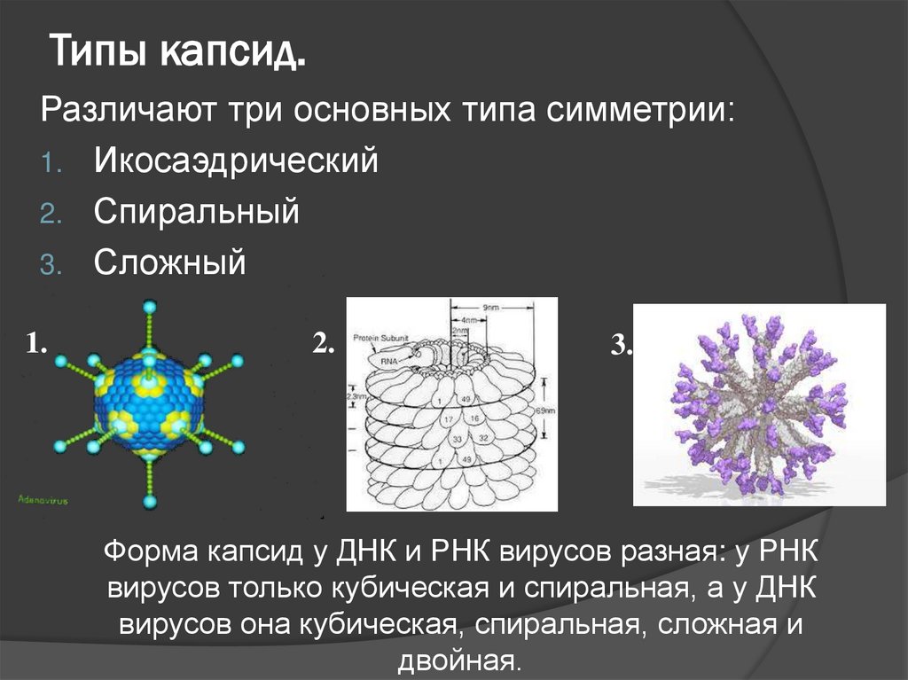 Форма капсид у ДНК и РНК вирусов разная: у РНК