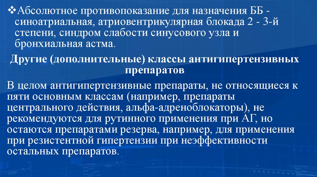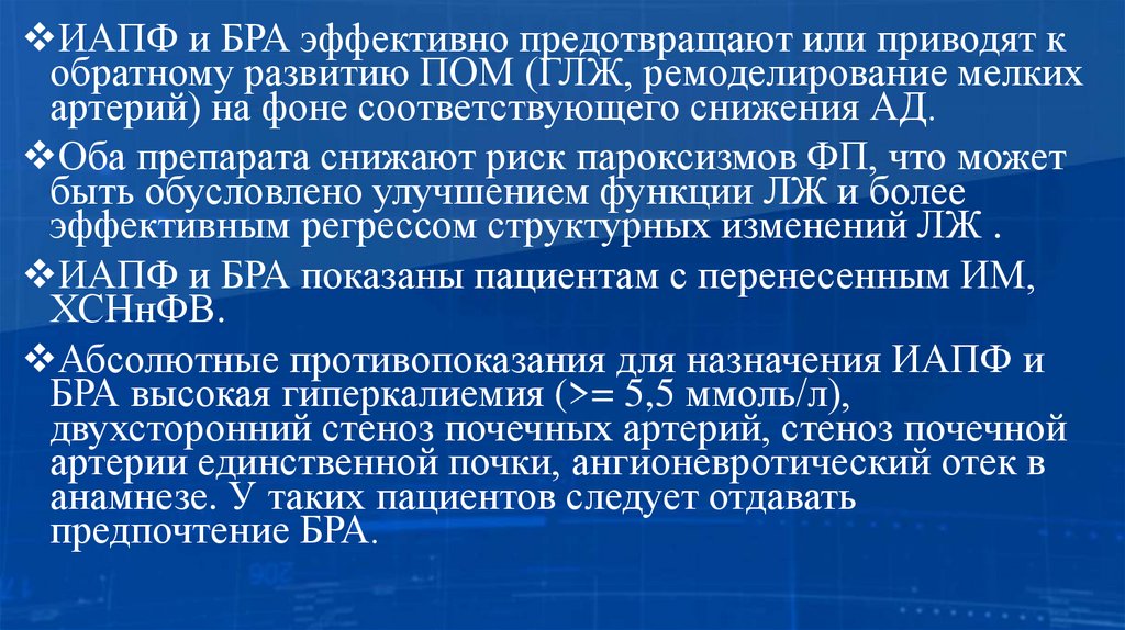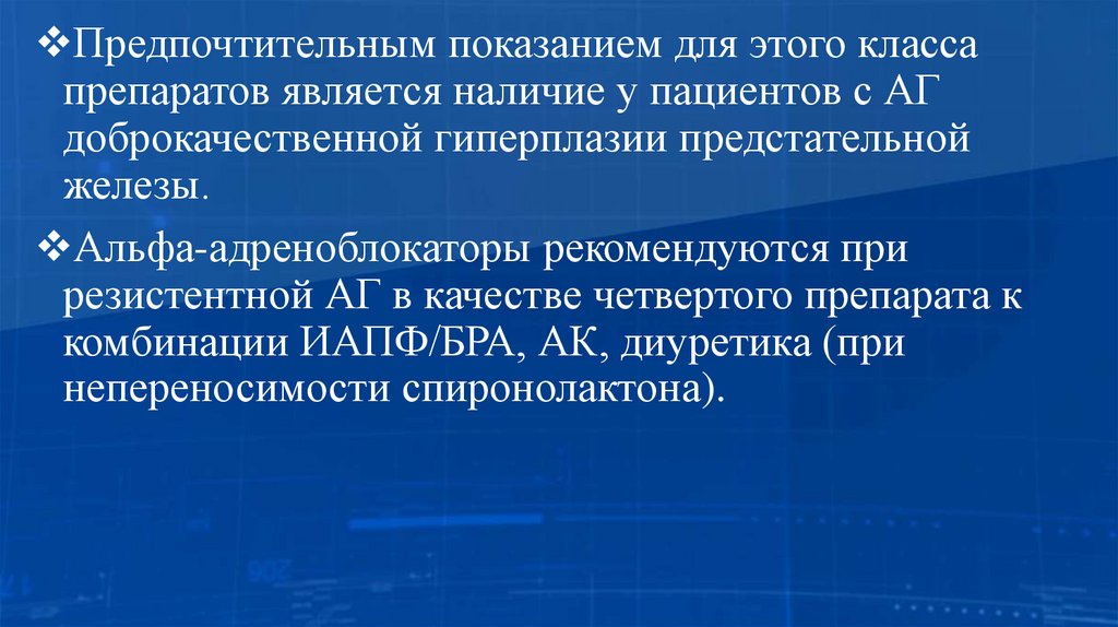 Предпочтительным показанием для этого классапрепаратов является наличие у пациентов с АГ