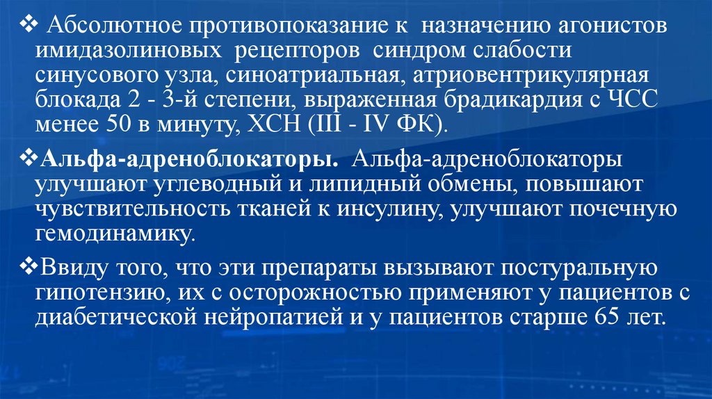 Абсолютное противопоказание к назначению агонистовимидазолиновых рецепторов синдром слабости