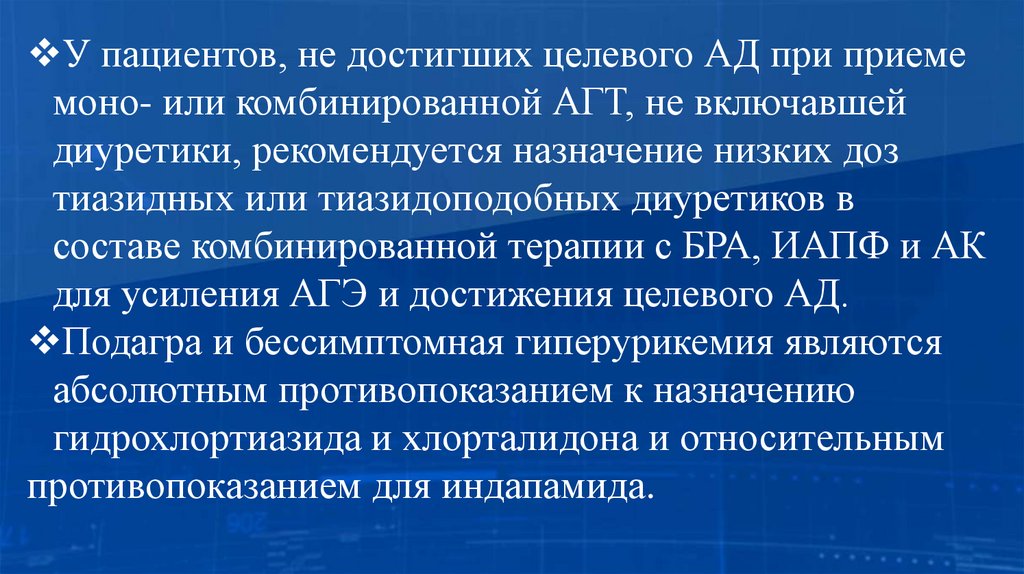 тиазидных или тиазидоподобных диуретиков в