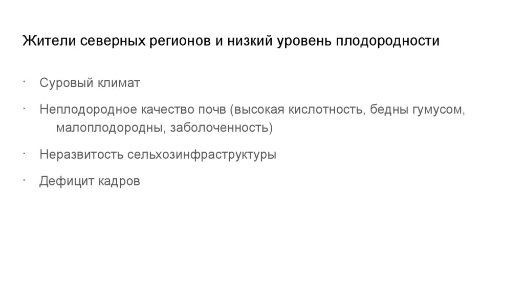 Жители северных регионов и низкий уровень плодородностиСуровый климат