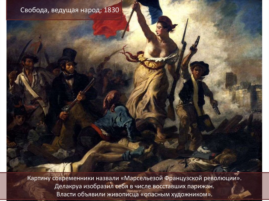 Свобода, ведущая народ; 1830Картину современники назвали «Марсельезой Французской революции».