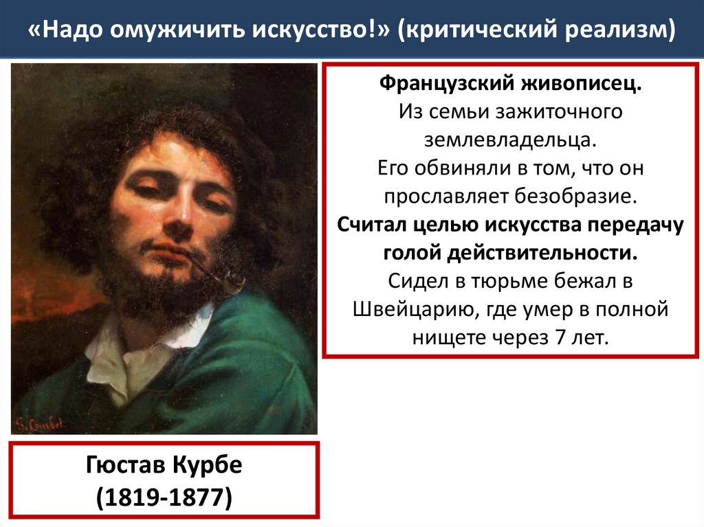 Критический реализм. «Надо омужичить искусство!»Французский живописец.