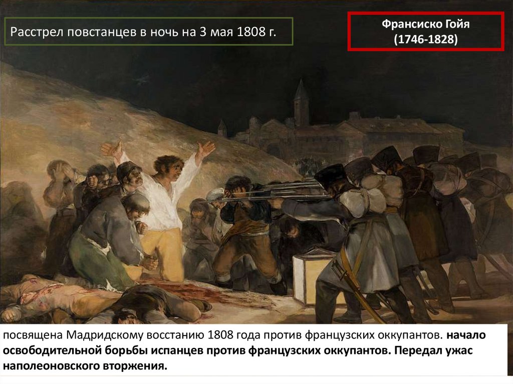 посвящена Мадридскому восстанию 1808 года против французских оккупантов. начало