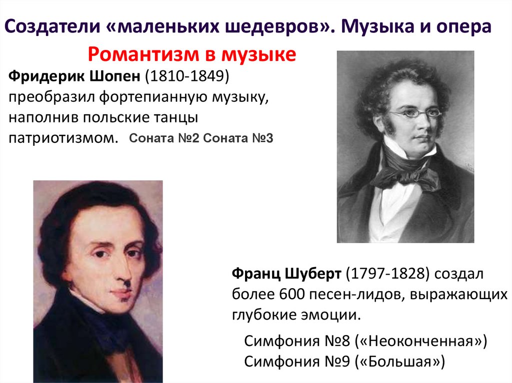 Создатели «маленьких шедевров». Музыка и операРомантизм в музыке