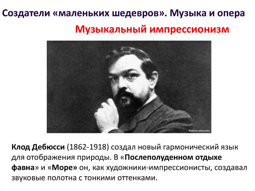 Создатели «маленьких шедевров». Музыка и операМузыкальный импрессионизм