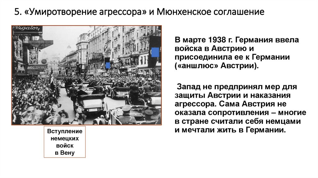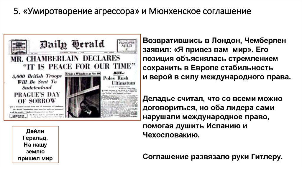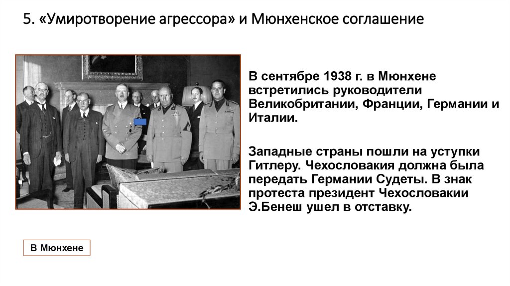 5. «Умиротворение агрессора» и Мюнхенское соглашение