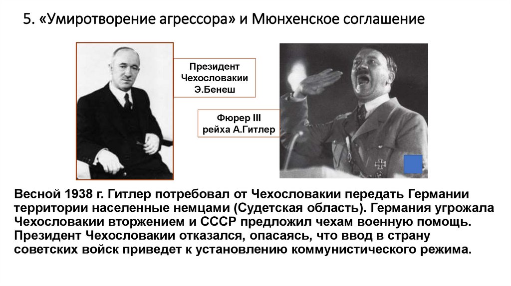 5. «Умиротворение агрессора» и Мюнхенское соглашениеПрезидент