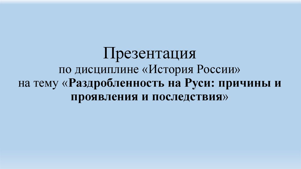 1. Презентация по дисциплине «История России» на тему «Раздробленность на Руси: причины и проявления и последствия»