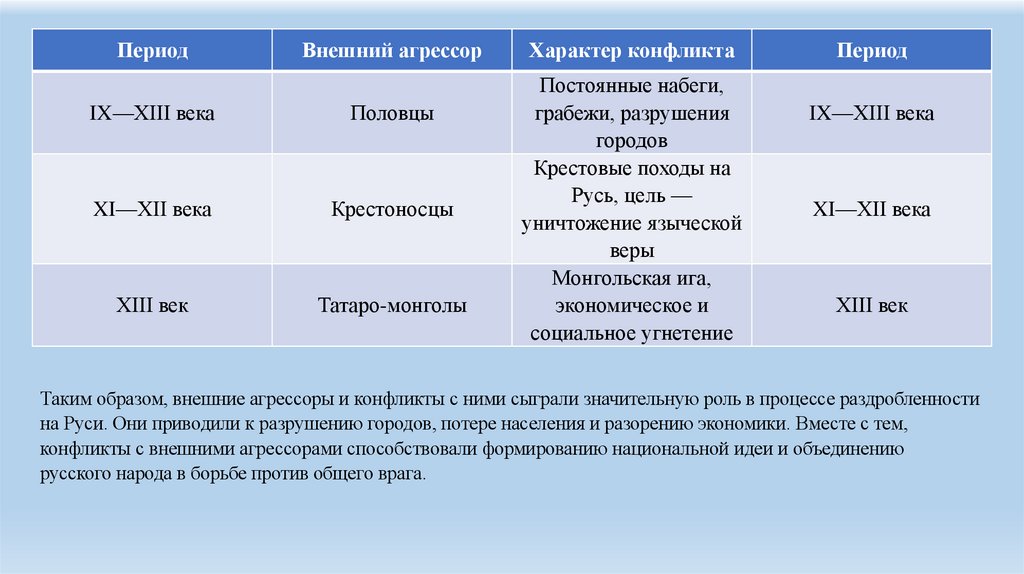 Таким образом, внешние агрессоры и конфликты с ними сыграли значительную роль в процессе раздробленности