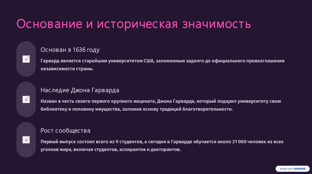 Гарвард является старейшим университетом США, заложенным задолго до официального провозглашения