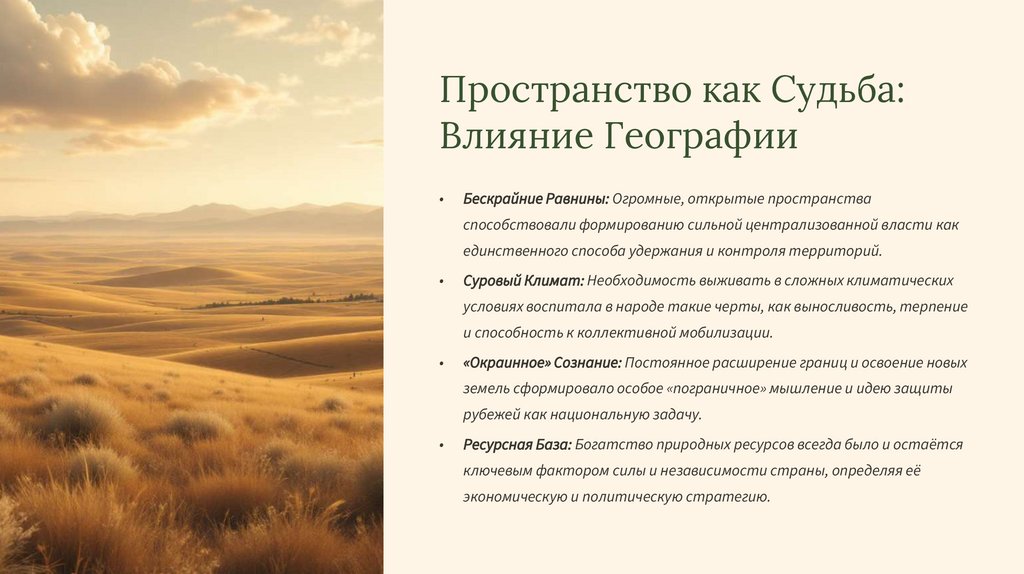 Эти события сформировали особый русский характер, сочетающий выносливость, жертвенность и стремление к