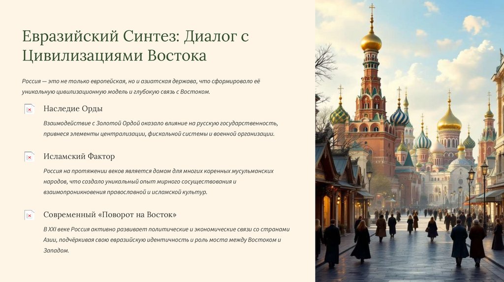 уникальную цивилизационную модель и глубокую связь с Востоком.