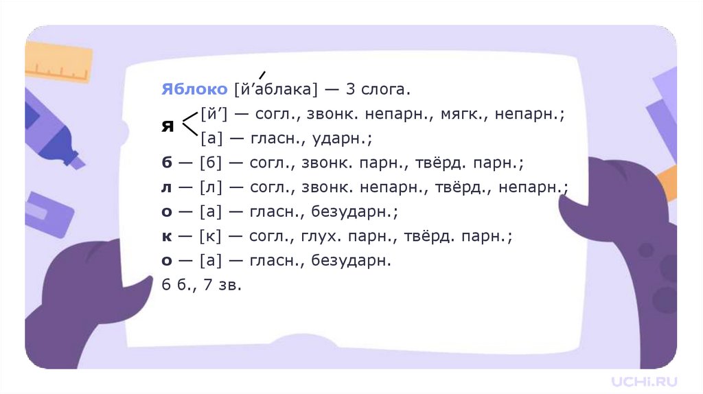 л — [л] — согл., звонк. непарн., твёрд., непарн.;