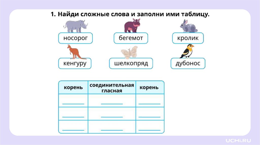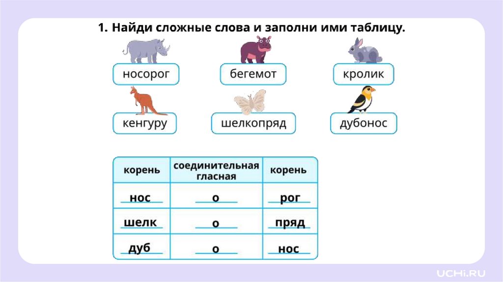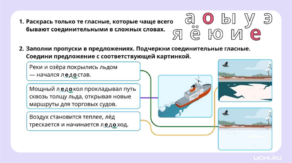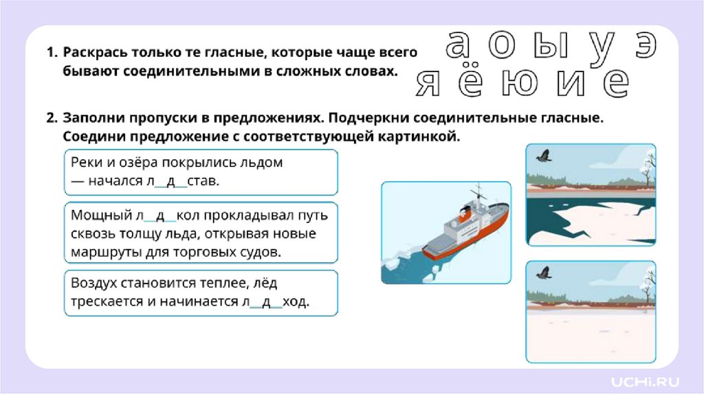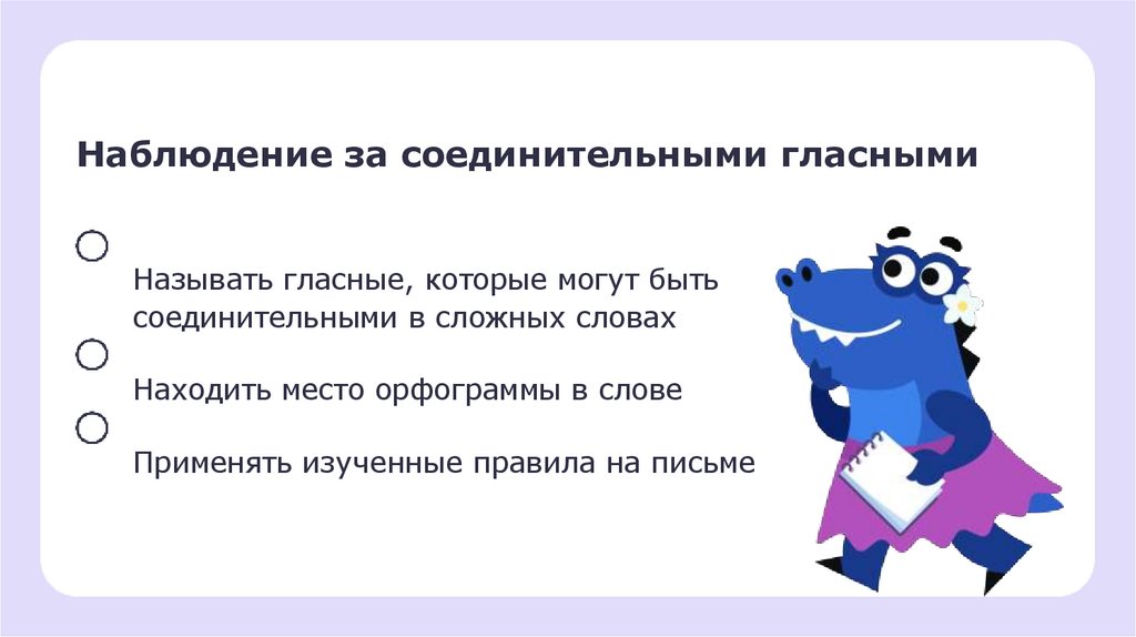 Наблюдение за соединительными гласнымиНазывать гласные, которые могут быть